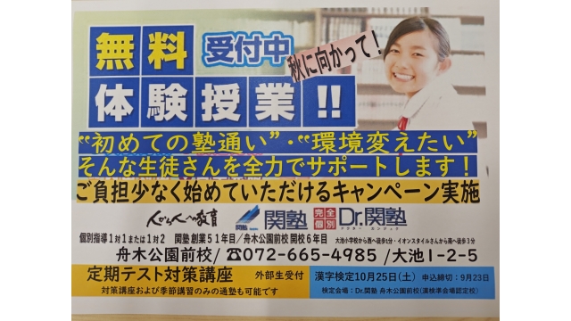 Dr.関塾 舟木公園前校のホームページをご覧いただき、ありがとうございます!
